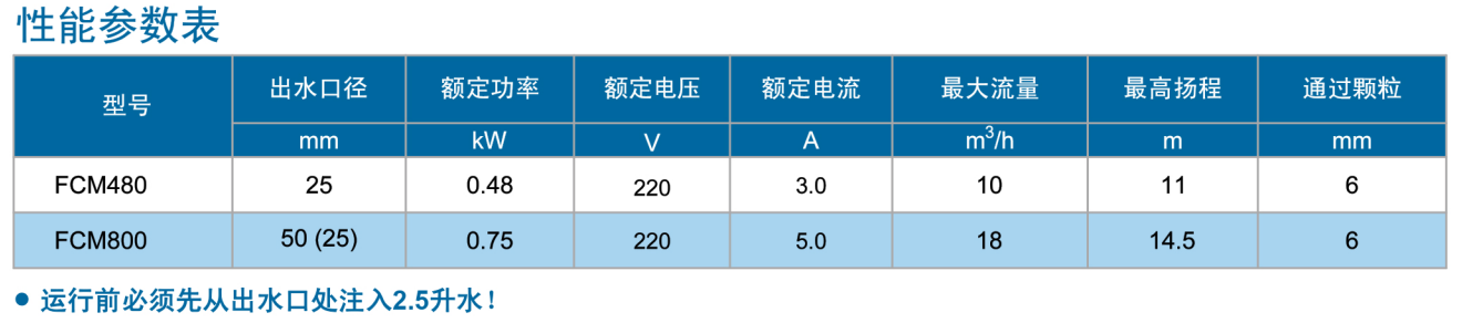 FCM 吸干式潛水泵(超低液位)性能參數(shù):