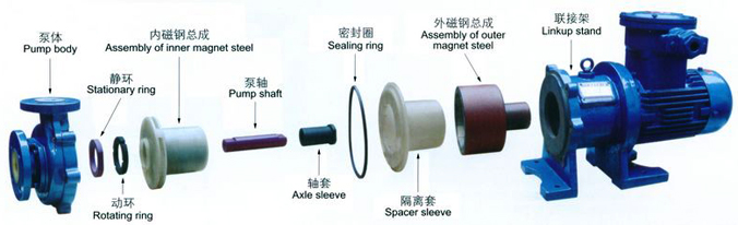 CQB-F型氟塑料磁力驅(qū)動泵結(jié)構(gòu)及工作原理: