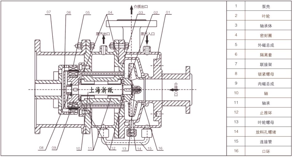 夾套保溫磁力泵磁材采用強(qiáng)磁耐高溫材料,確保足夠的磁傳力矩;隔離套設(shè)計成不等截面結(jié)枃,較等截面筒型隔離套的渦流損失減少1/2;采用獨(dú)特設(shè)計的新型保溫箱結(jié)構(gòu),保證了介質(zhì)在輸送過程中不會冷凝,同時溫度過高時,保溫箱中可通入冷卻水,帶走過多的熱量,可以有效的保證電機(jī)和磁鋼的正常運(yùn)轉(zhuǎn);采用流體動力潤滑軸承,比原有磁力泵的同心圓式軸承運(yùn)轉(zhuǎn)更可靠,壽命更長;采用新型的保溫結(jié)構(gòu),確保介質(zhì)在運(yùn)轉(zhuǎn)過程中不會結(jié)晶;可以根據(jù)用戶要求配備斷流自動停車裝置,以避免泵的干運(yùn)轉(zhuǎn)。由于夾套保溫磁力泵采用了以上的新技術(shù),使該泵在輸送高溫介質(zhì)時具有更高的可靠性和更長的使用壽命。