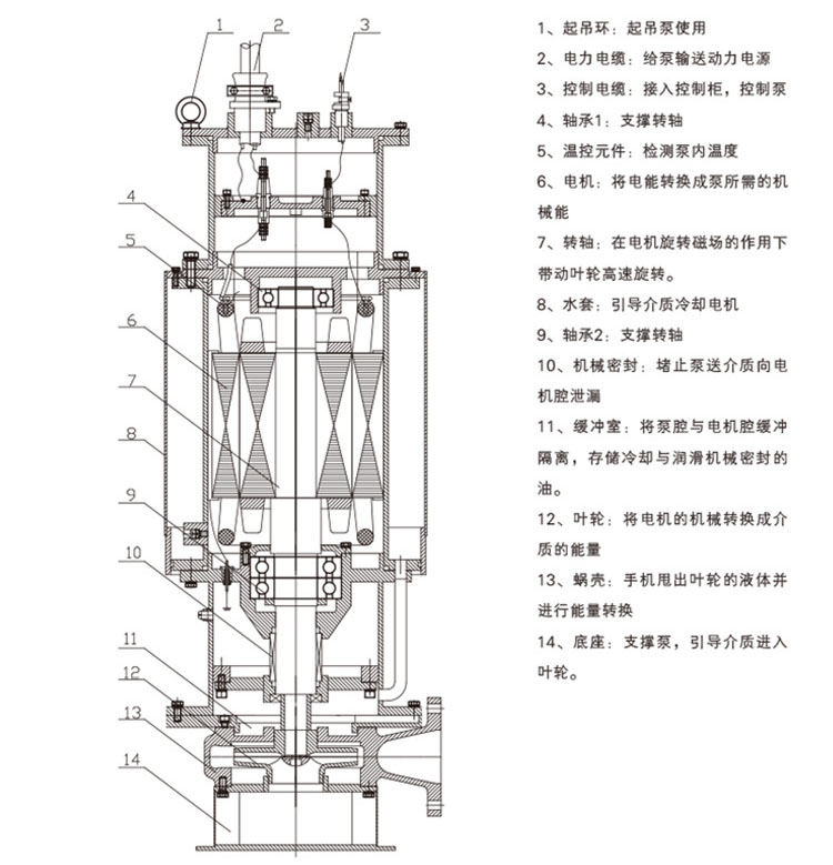 ●采用經(jīng)國內(nèi)專業(yè)檢驗(yàn)機(jī)構(gòu)認(rèn)證的防爆潛水電機(jī)(有證書),配備通過能力較強(qiáng)的水力件,構(gòu)成本系列產(chǎn)品。