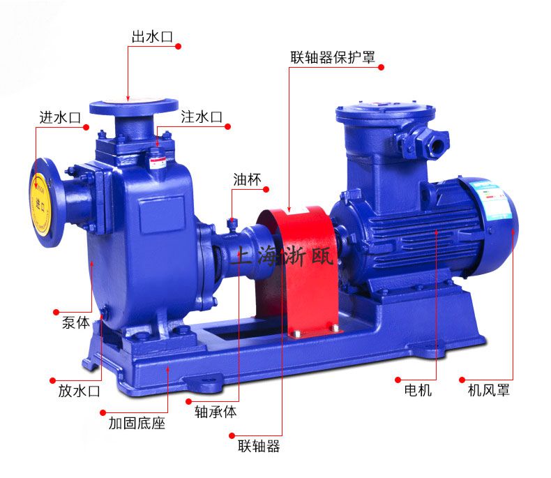 該泵屬自吸式離心泵,自吸式離心泵具有結構簡單、操作方便、運行平穩(wěn)、維護容易、效率高、壽命長,具有較強的自吸能力等優(yōu)點。管路中不需底閥,工作前只需保證泵體內(nèi)儲有定量引油即可。用于油輪或輸水船舶上時,可兼作掃艙泵,掃艙效果良好。
