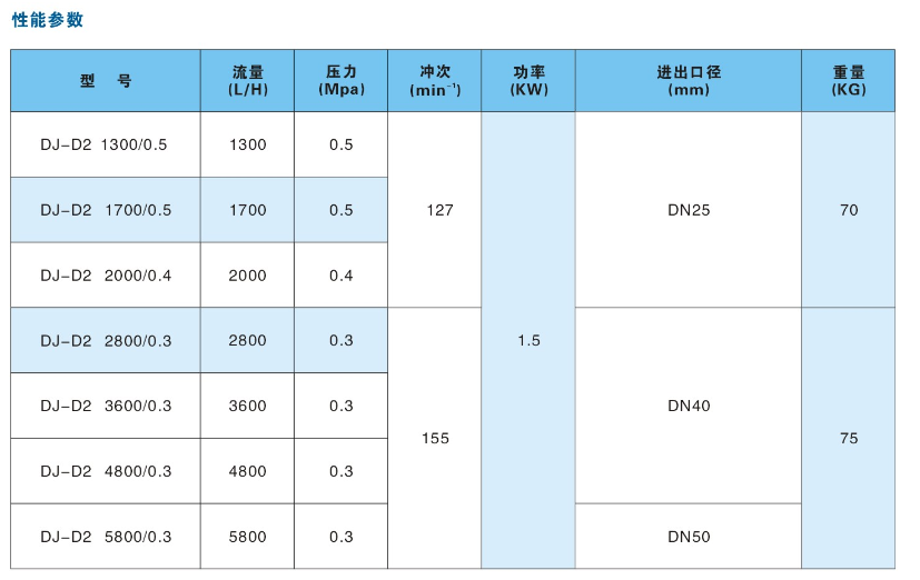 DJ-D2隔膜式計(jì)量泵性能參數(shù):