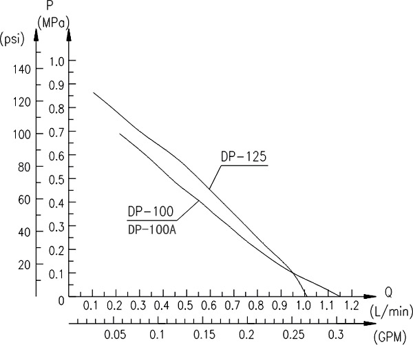 2.裝有隨泵附帶的進(jìn)出口接頭,DP-130 DP-125 DP-100 DP-60型隔膜泵進(jìn)出口采用ZG3/8″外牙G29/64″彎管接頭;DP-35隔膜泵進(jìn)出口采用3/8″外牙軟管接頭.