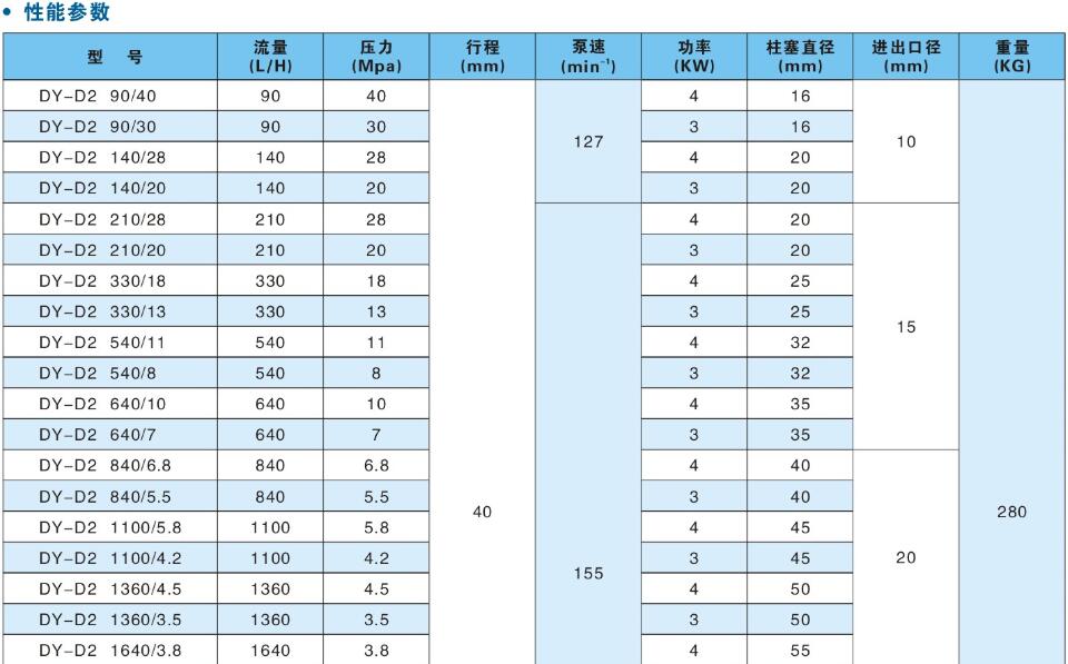 DY-D2型液壓隔膜式計(jì)量泵性能參數(shù):