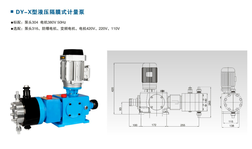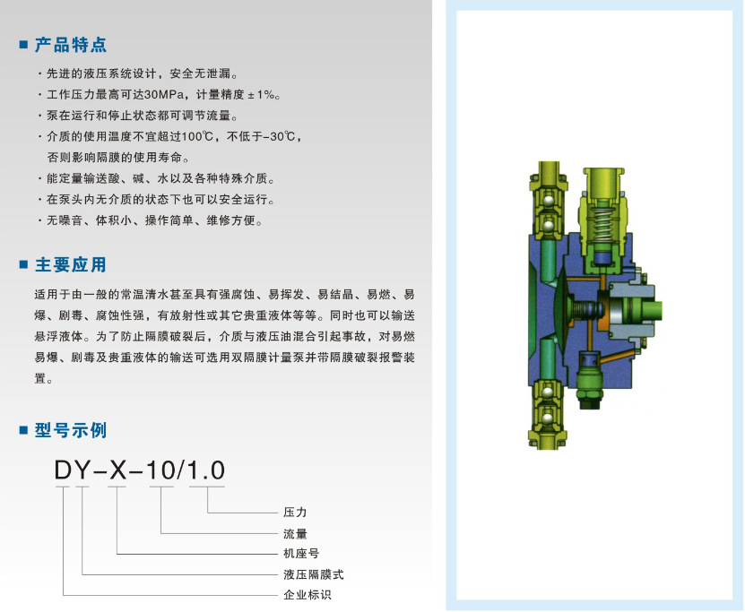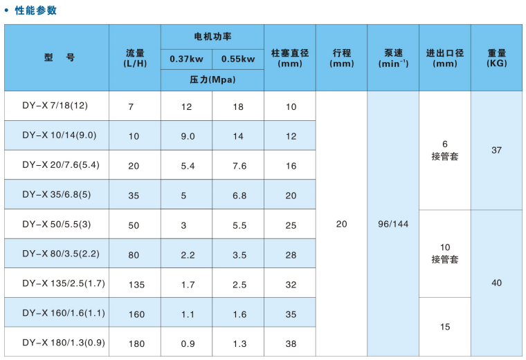 DY-X液壓隔膜式計量泵性能參數(shù):