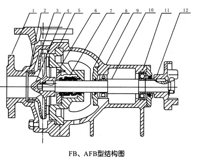 FB、AFB型不銹鋼耐腐蝕化工離心泵┃耐腐蝕離心泵結(jié)構(gòu)圖: