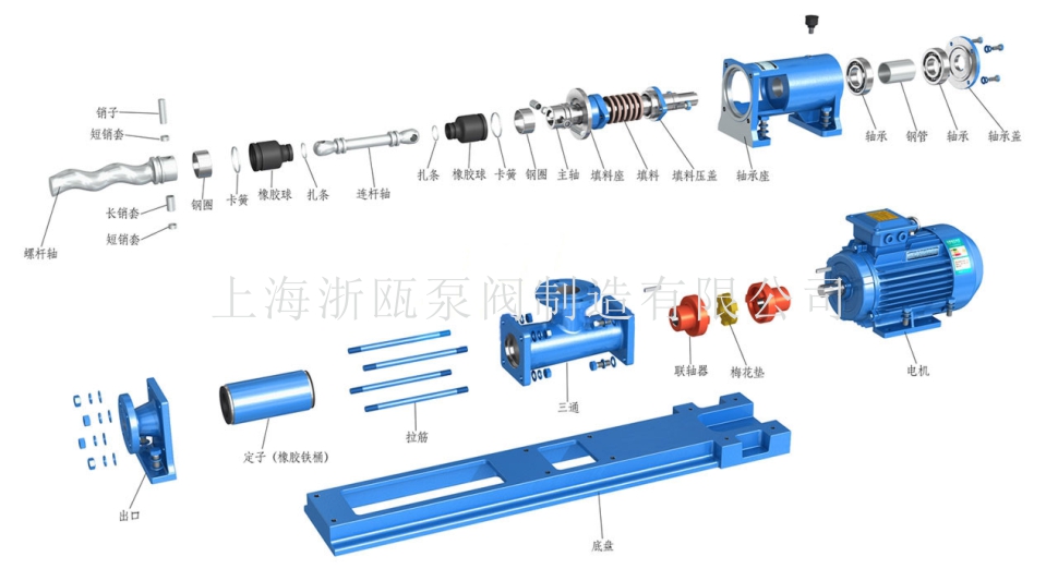 這種泵零件少,結(jié)構(gòu)緊湊,體積小,維修簡(jiǎn)便,轉(zhuǎn)子和定子是本泵的易損件,結(jié)構(gòu)簡(jiǎn)單,便于裝拆。