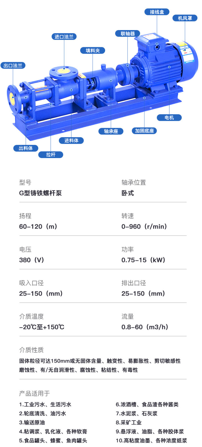 食品罐頭行業(yè):各種粘稠淀粉、濃酒糟、糧食制品渣、各種醬類、漿類、固體物漿液
