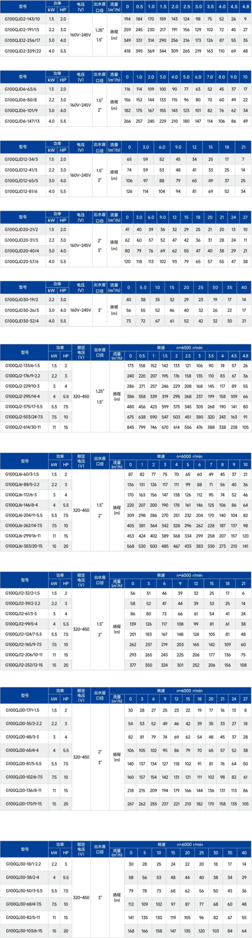 G100QJD系列高速高效節(jié)能深井泵性能參數(shù):