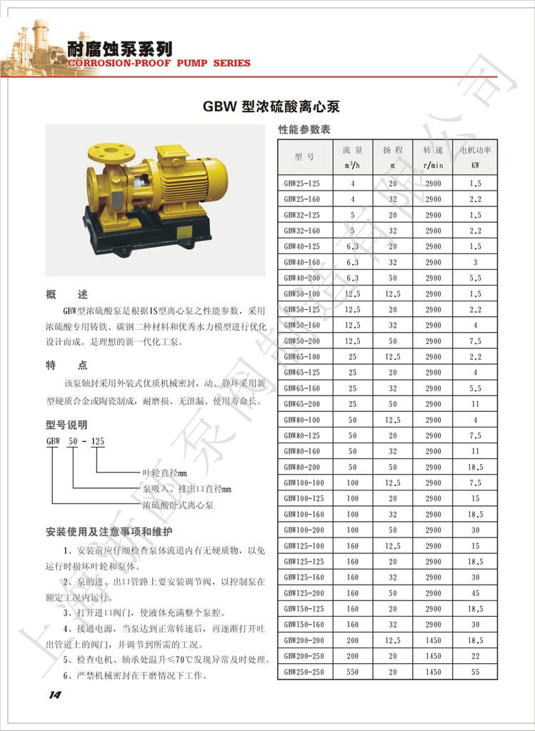 GBW型臥式濃硫酸耐腐蝕化工泵產(chǎn)品手冊下載