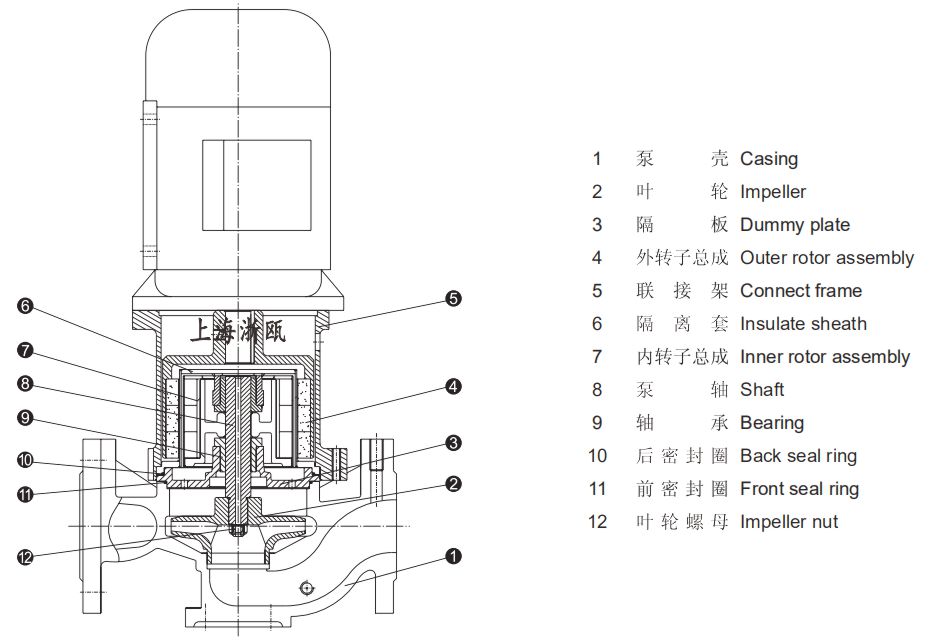 2、材質(zhì)優(yōu)良,泵體、葉輪、隔離套等過(guò)流部件均采用優(yōu)質(zhì)不銹鋼制造;