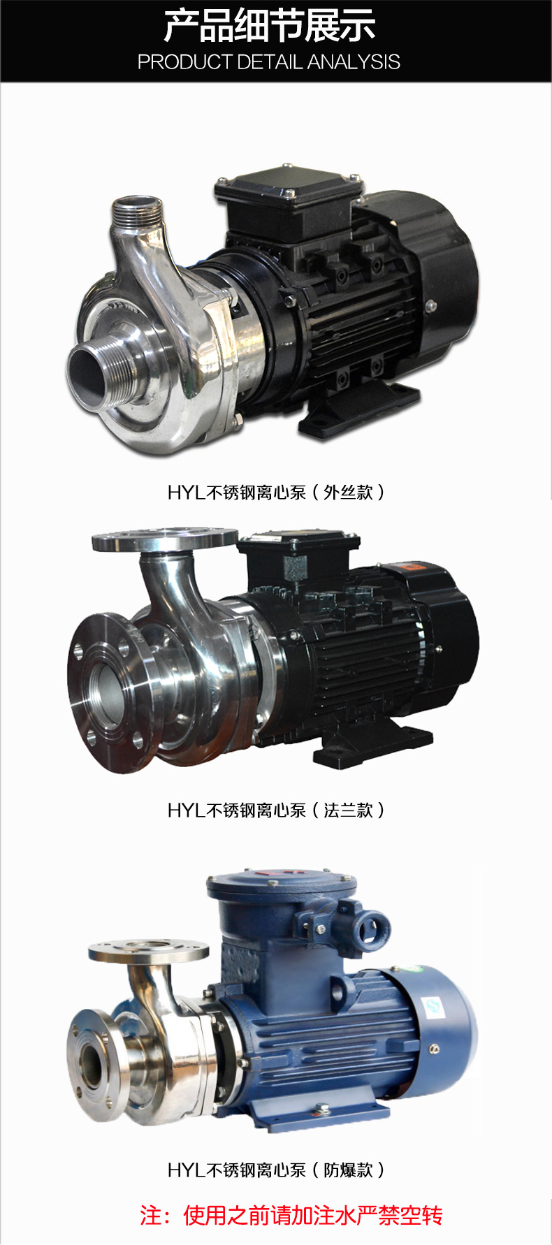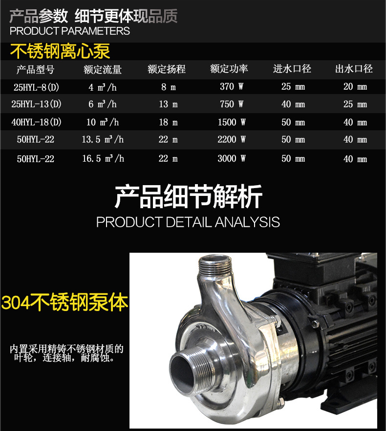 HYL和HYLZ系列HYL和HYLZ系列不銹鋼耐腐蝕離心泵 手提式小型防腐耐酸堿化工自吸泵 泵可輸送溫度不高于90℃(直聯(lián)式)或不高于105℃(帶軸承托架式),含(或不含)有細(xì)小軟顆粒或纖維質(zhì),帶腐蝕性或衛(wèi)生要求的液體,HYLZ系列泵還具有自吸性能,兩系列泵廣泛適用于食品、飲料、醫(yī)藥、污水處理、化工、電鍍、漂染、精細(xì)化工等行業(yè)使用。