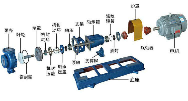 IHF型泵為單級單吸式氟塑料合金化工離心泵,是按國標(biāo)設(shè)計并結(jié)合非金屬泵的加工工藝設(shè)計生產(chǎn)的。該泵具有耐腐蝕、耐磨、耐高溫、不老化、機械強度高、無毒分解、使用溫度寬等優(yōu)點。泵體采用金屬外殼內(nèi)襯聚全氟乙丙烯(F46)、葉輪和泵蓋均采用金屬嵌件外包氟塑料整體燒結(jié)壓制成型,軸封采用外裝式波紋管機械密封。