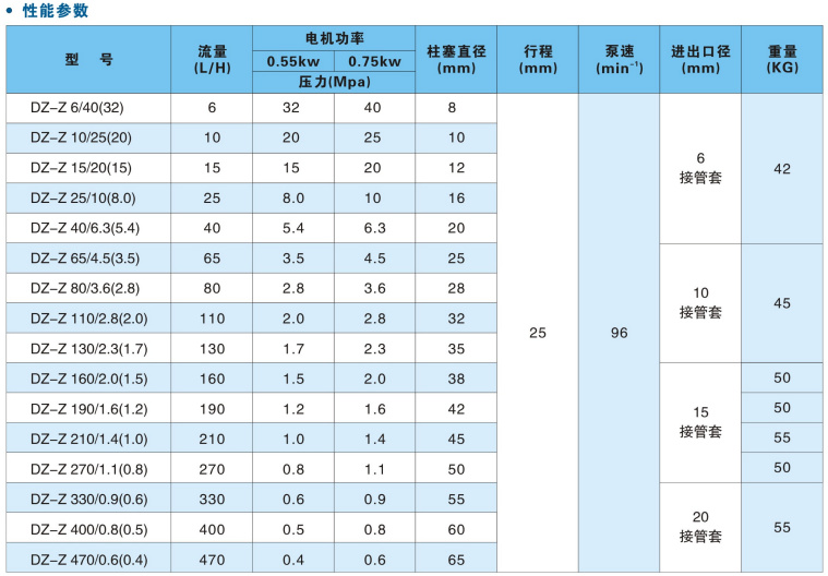 DZ-Z系列柱塞式計(jì)量性能參數(shù):