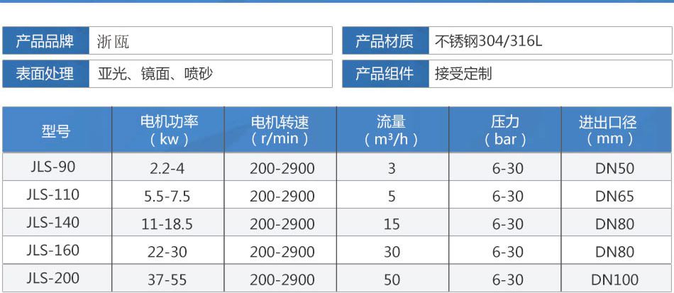 JLS衛(wèi)生級(jí)雙螺桿泵性能參數(shù):