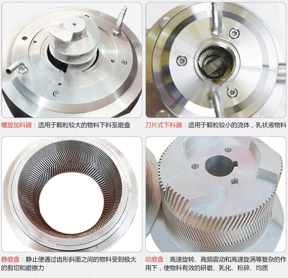 3.精細(xì)超微粒的粉碎效益較高,采用剪切、研磨及高速攪拌作用力,粉碎、研磨依靠磨盤齒形斜面的相對(duì)運(yùn)動(dòng)而成。