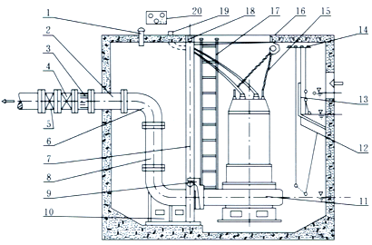 JYWQ自動(dòng)攪勻排污泵自動(dòng)藕合式安裝示意圖:
