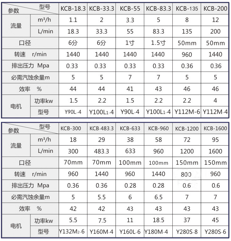 KCB齒輪油泵適用于輸送各種有潤滑性的液體,溫度不高于70℃,如需高溫200℃,可配用耐高溫材料即可,粘度為5×10-5~1.5×10-3m2/s。