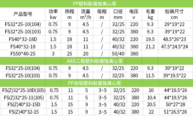 PF耐腐蝕塑料離心泵性能參數(shù):