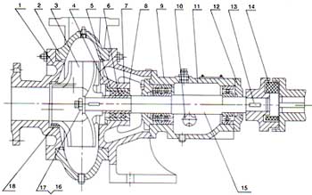 | 1 | 泵蓋 | 3 | 葉輪 | 5 | 軸封盒 | 7 | 軸套(4PW無(wú)) | 9 | 軸套 |