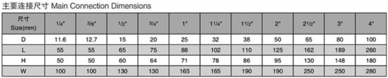 Q11F兩片式球閥尺寸: