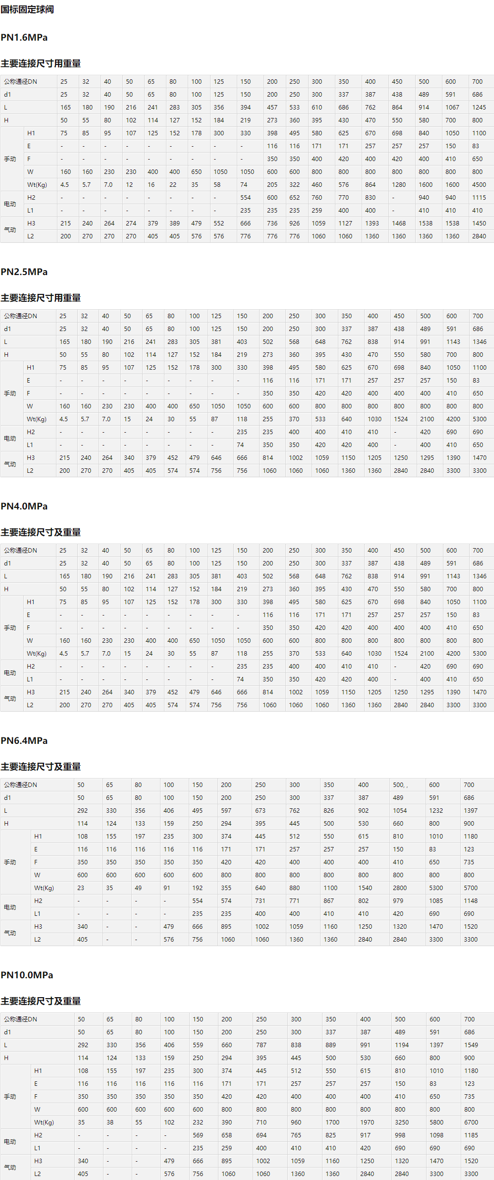 Q47H 金屬硬密封固定球閥主要尺寸:
