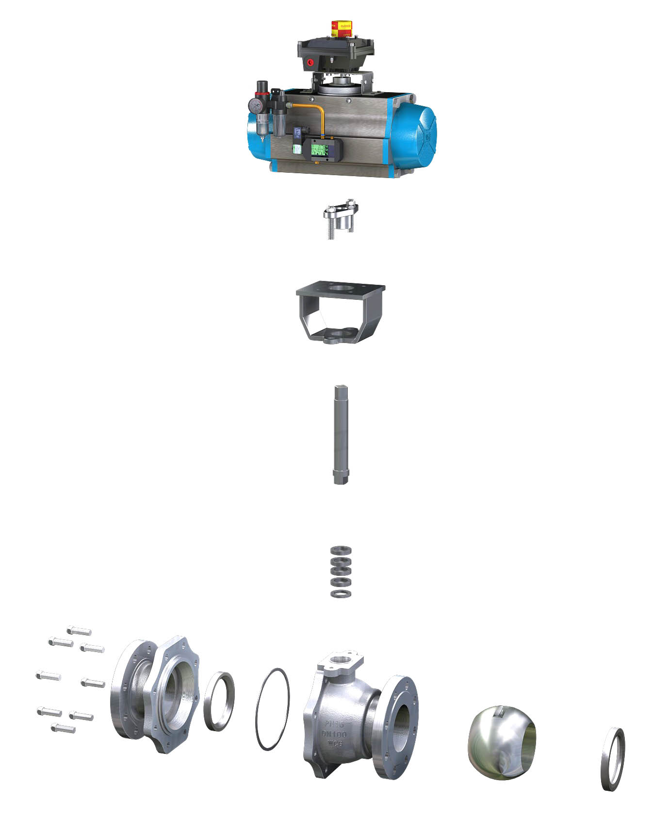 采用AT或GT型氣動(dòng)執(zhí)行器,有雙作用式和單作用式(彈簧復(fù)位),齒輪齒條傳動(dòng);大口徑閥門采用系列AW型氣動(dòng)執(zhí)行器拔叉式傳動(dòng),結(jié)構(gòu)合理,輸出扭矩大,有雙作用式和單作用式。
