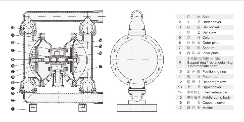 QBK氣動(dòng)隔膜泵結(jié)構(gòu)圖: