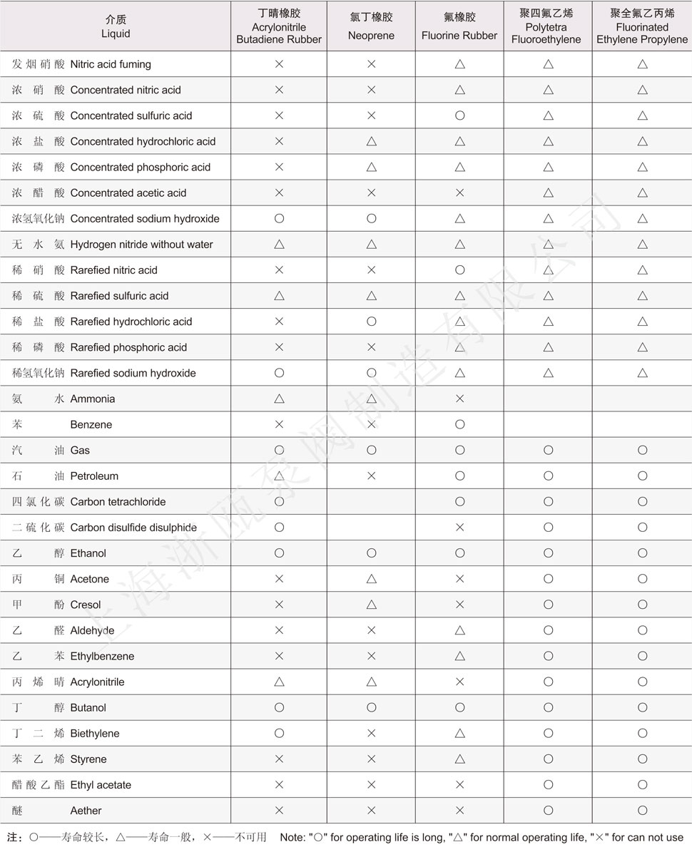 QBK氣動隔膜泵膜片材質(zhì)表: