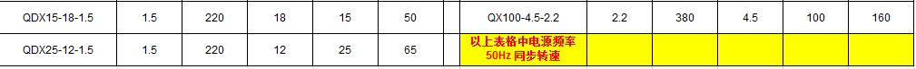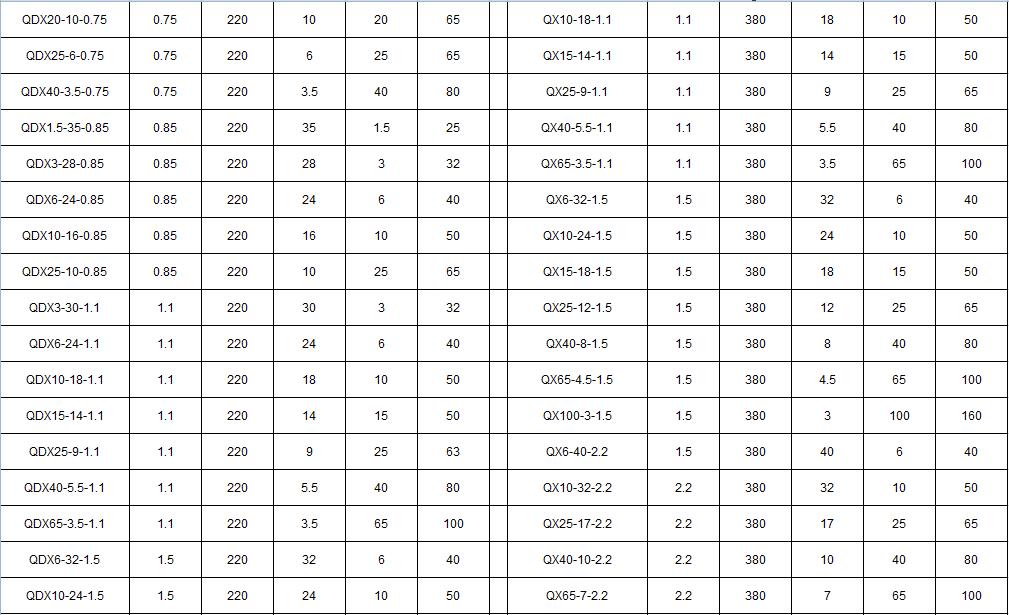 QDX型小型清水潛水泵性能參數(shù):