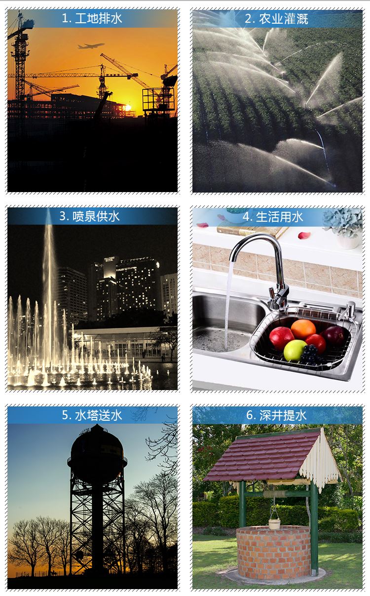 本系列清水潛水泵廣泛應(yīng)用于農(nóng)村井下抽水、農(nóng)田排灌、園林澆灌和家庭生活用水,也可用于抽排工業(yè)積水、養(yǎng)殖用水等.