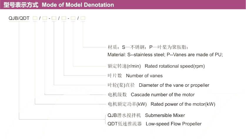 QJB型潛水?dāng)嚢铏C(jī)作為水處理工藝中的關(guān)鍵設(shè)備之一,在水處理工藝流程中,可實(shí)現(xiàn)生化過程中固液二相流和固 液氣三相流的均質(zhì)、流動(dòng)的工藝要求。它由潛水電機(jī)、葉輪和安裝系統(tǒng)等組成。潛水?dāng)嚢铏C(jī)為直聯(lián)式結(jié)構(gòu)。它與傳統(tǒng) 的大功率電機(jī)通過減速機(jī)降速相比,具有結(jié)構(gòu)緊湊、能耗低、便于維護(hù)保養(yǎng)等優(yōu)點(diǎn)。葉輪經(jīng)過精鑄或沖壓成型,精度 高、推力大、流線性造型簡潔美觀。
