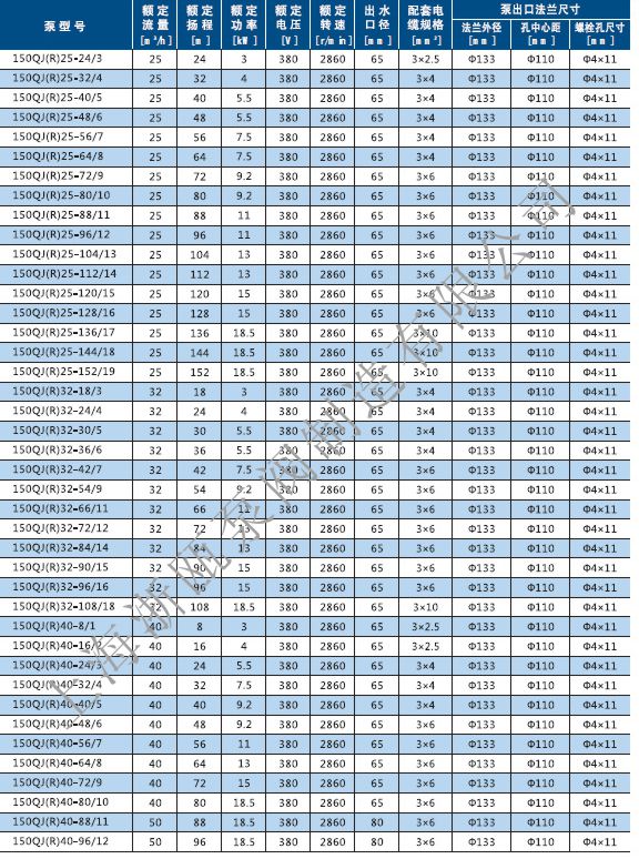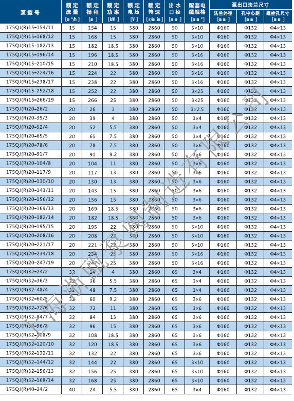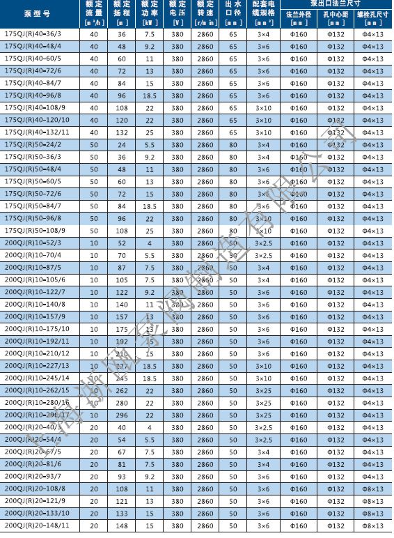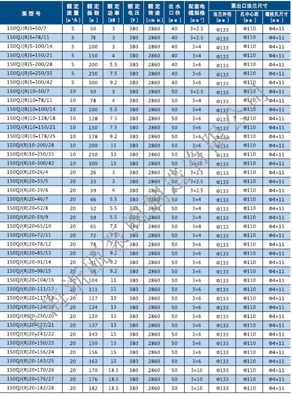 QJ不銹鋼深井泵性能參數(shù):