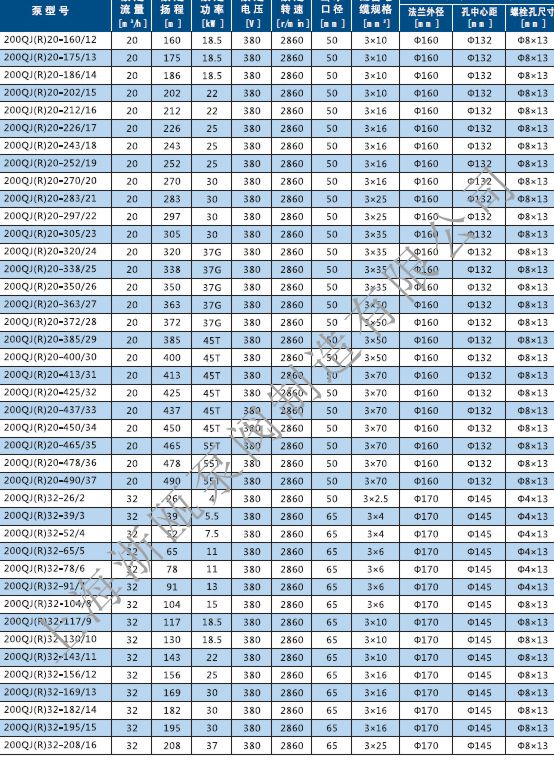 深井潛水泵型號: