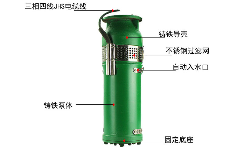 5、泵采用不銹鋼濾網(wǎng)護(hù)罩,三相四線電纜。