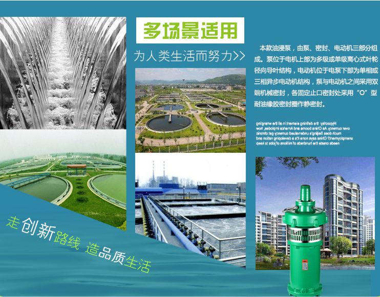 QY型充油式潛水電泵(簡(jiǎn)稱潛水泵)是水泵和三相異步電動(dòng)機(jī)合成一體的電力排灌設(shè)備。具有可靠的防水密封性能,體積小、重量輕、不需泵房,不需灌引水,使用維護(hù)和管理均為方便。
