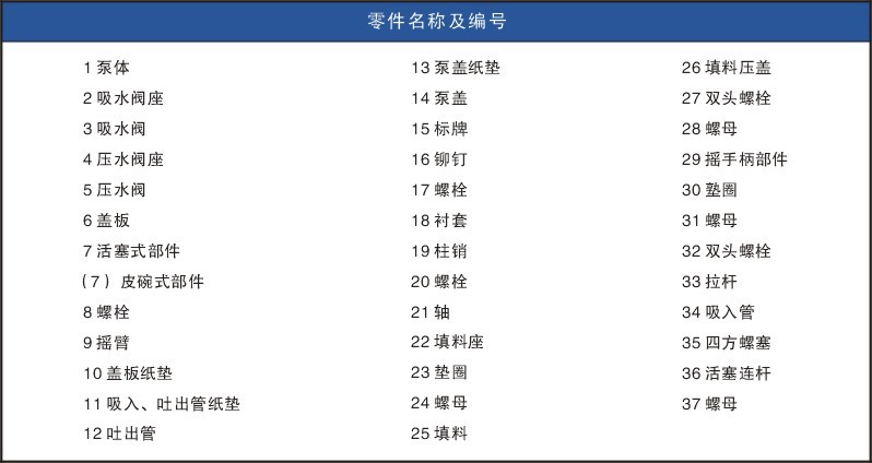 本型泵的結(jié)構(gòu)原理是,當(dāng)用手往復(fù)搖動搖手柄(29)時,通過軸(21)、搖臂(9)、