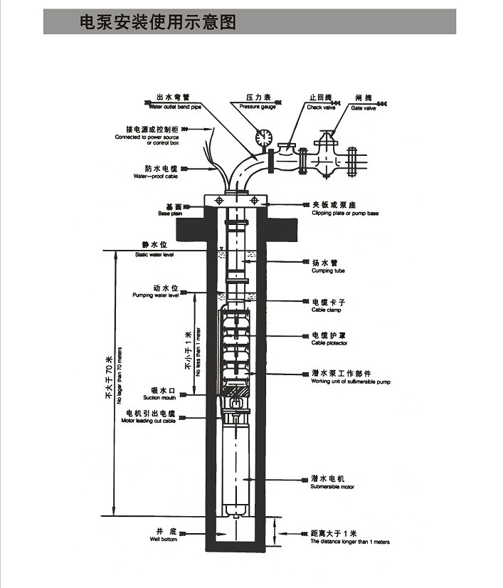 適用與農(nóng)田灌溉,花園澆水,噴泉景觀,雨水回收利用系統(tǒng),礦山排水、搶險(xiǎn),城市供水,企事業(yè)單位提起地下水源之用。該設(shè)備噪音低,效率高節(jié)約電能。