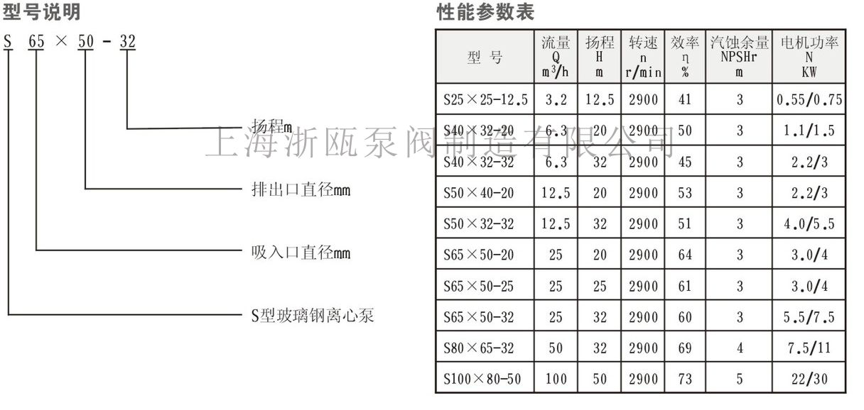 S型直連式玻璃鋼化工泵性能參數(shù):