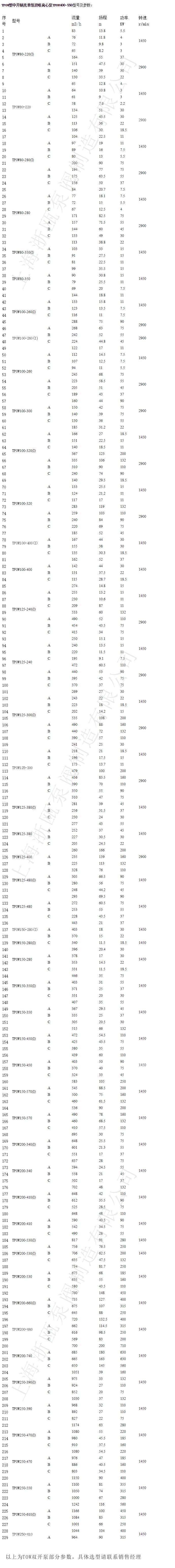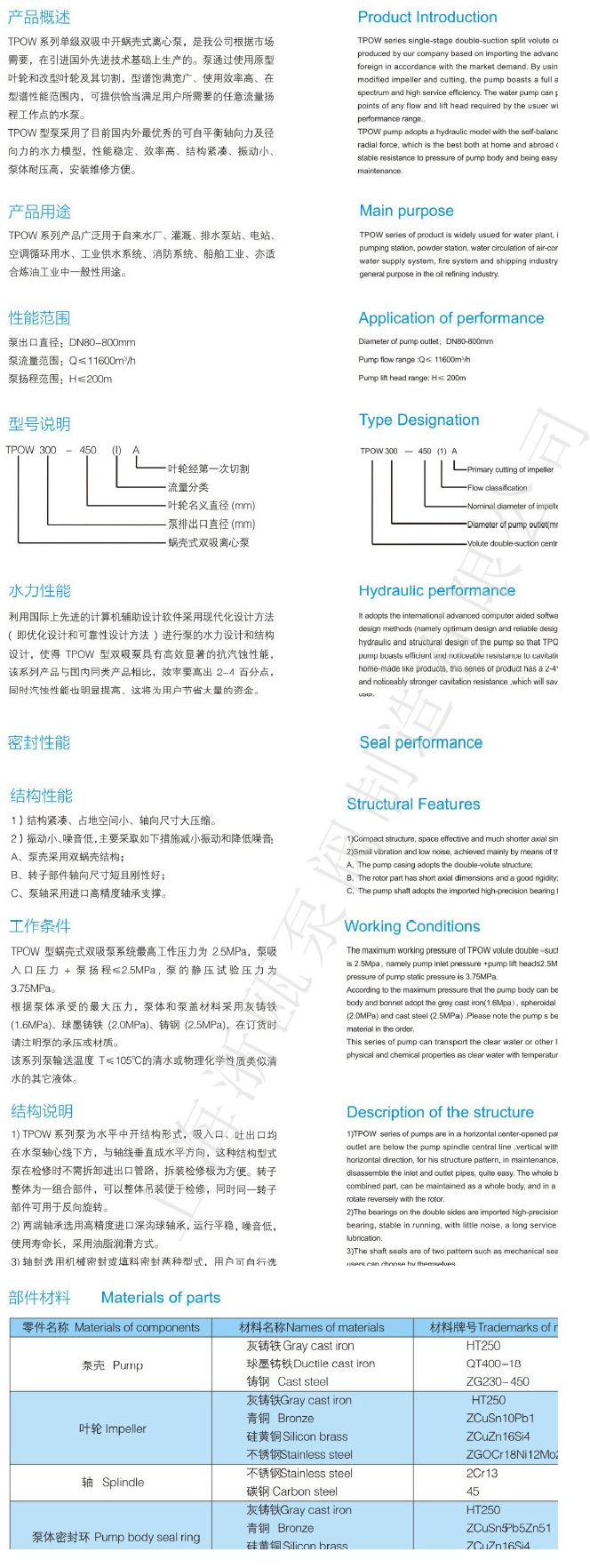 TPOW雙吸離心泵中開泵蝸殼泵性能參數(shù):
