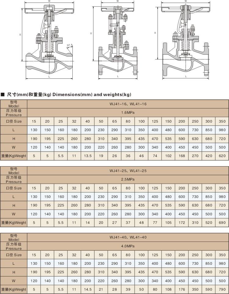 WJ41H波紋管截止閥尺寸: