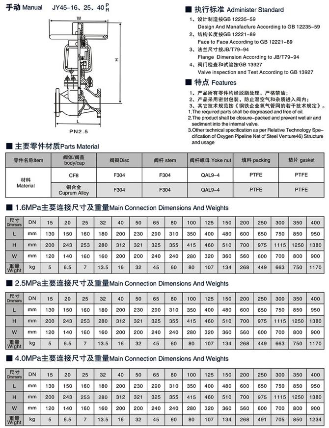 氧氣禁油截止閥產品特點
