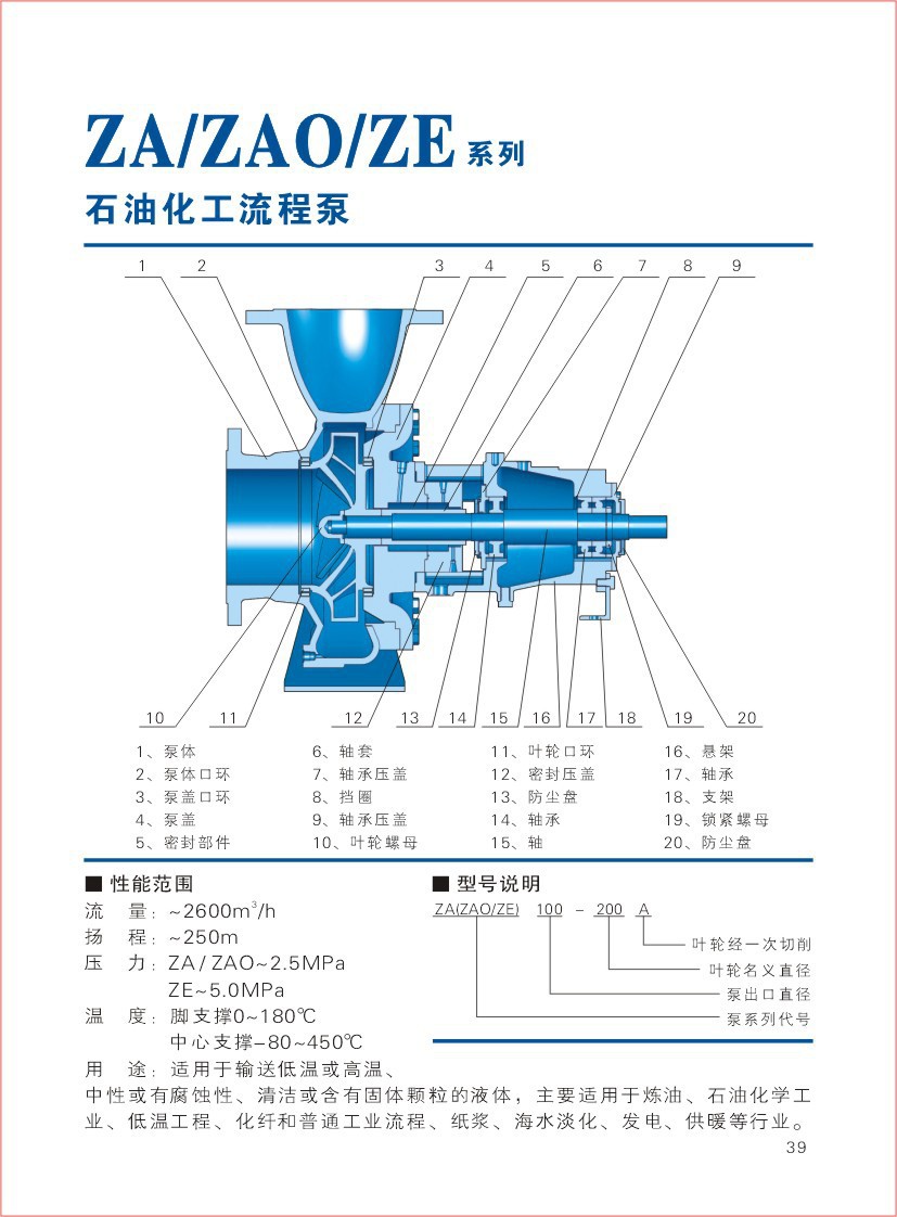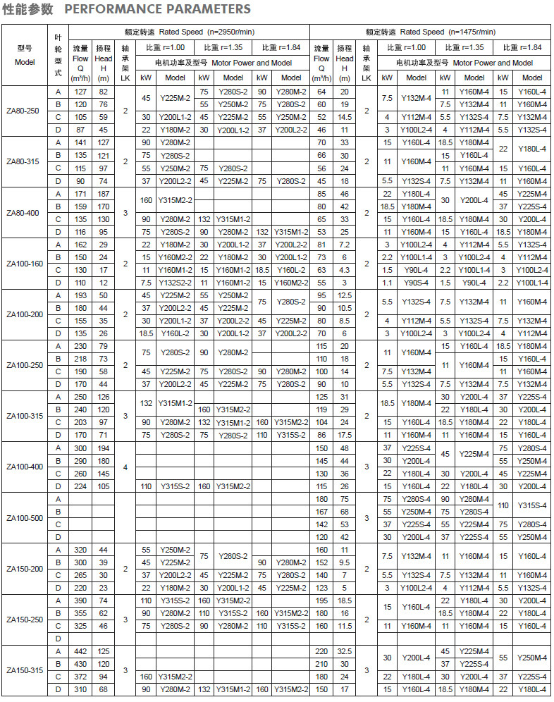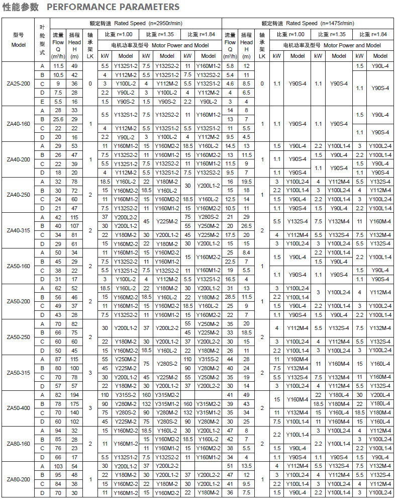 ZA石油化工流程泵性能參數(shù):