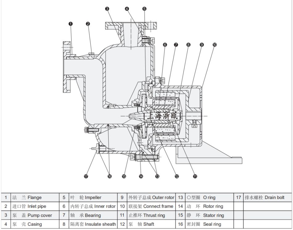 ZBF自吸式塑料磁力泵結(jié)構(gòu)圖