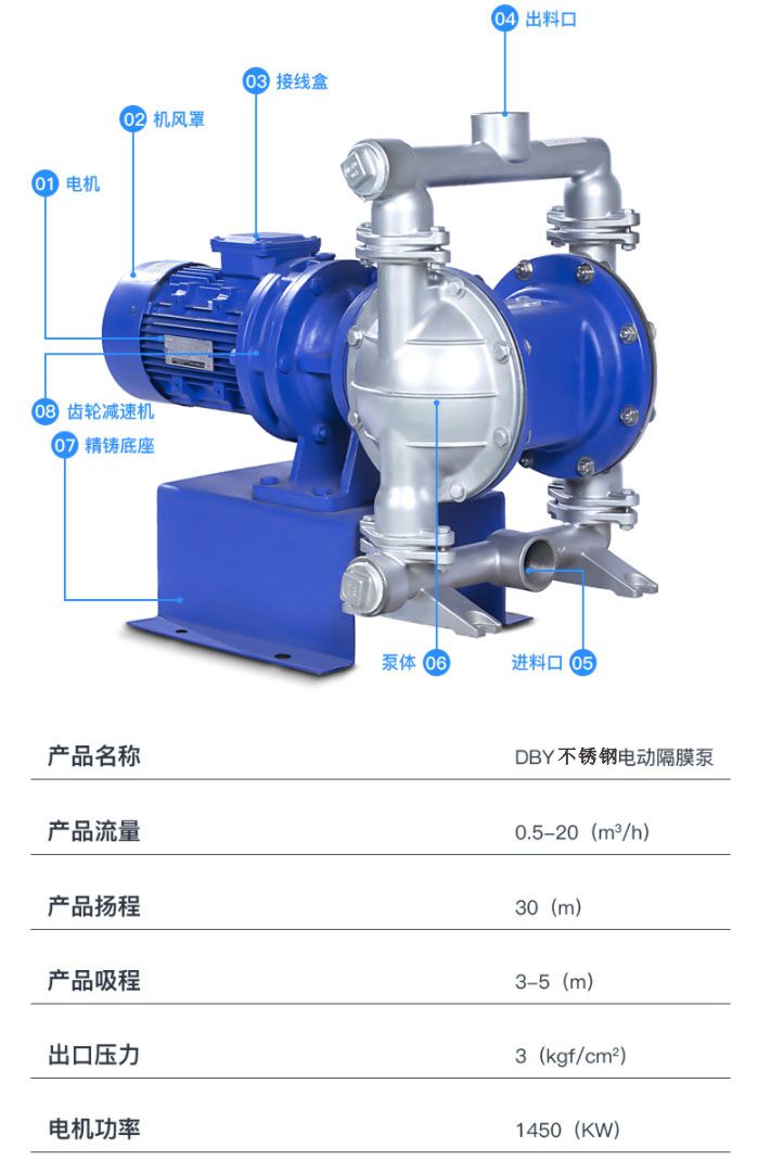 DBY電動(dòng)隔膜泵性能參數(shù):