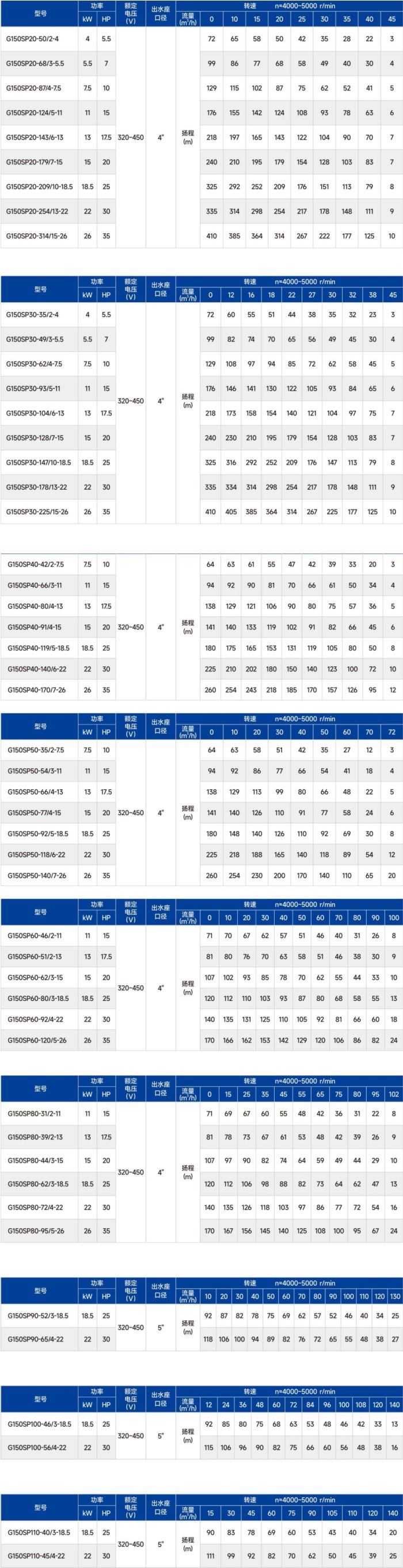 G150SP系列高速高效節(jié)能深井泵性能參數(shù):