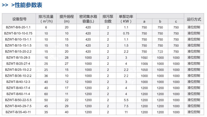 WT-B固液分離型一體化不銹鋼污水提升性能參數(shù):