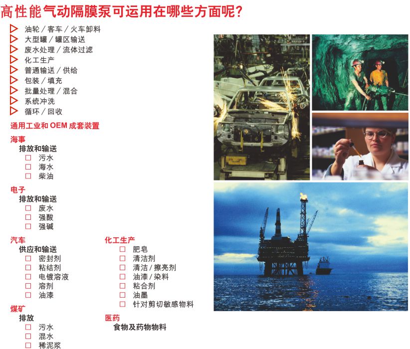 高性能隔膜泵從一開始用作公用事業(yè)的排水泵/排污泵,經(jīng)過各個(gè)不同的設(shè)計(jì)演化階段,高性能隔膜泵已受到各地工藝過程專業(yè)人員的青睞。就是因?yàn)樗母咝阅苄裕唵涡?,性價(jià)比性,這種基本特性與工程設(shè)計(jì)、生產(chǎn)效率、相容性和經(jīng)濟(jì)性融入氣動隔膜泵的方方面面。經(jīng)濟(jì)性體現(xiàn)于更少的零部件修理和勞動力需求;經(jīng)濟(jì)性體現(xiàn)于節(jié)約能源;經(jīng)濟(jì)性體現(xiàn)于優(yōu)越的性能。