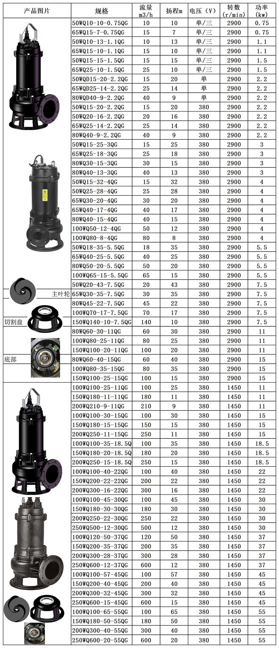 WQ-QG帶切割高揚程潛水排污泵主要用于工程污水,生活污水。