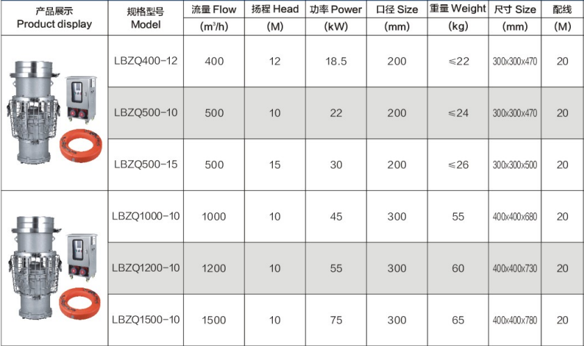 航空鋁超輕型永磁同步應(yīng)急抗洪泵性能參數(shù):